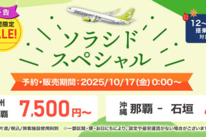 Solaseed Air(ソラシドエア)は2025年10月17日から、割引運賃「ソラシドスペシャル」を販売します。 ソラシドスペシャル対象路線と運賃 東京(羽田)⇔宮崎 7,900円〜 東京(羽田)⇔熊本 …