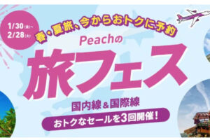 Peach(ピーチ)は2026年1月30日12時から、「国内線・国際線セール」を実施します。 こちらは2月28日まで3回に分けて実施される「Peachの旅フェス」の第1弾です。 セール対象路線と価格 <…