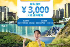 ティーウェイ航空は2026年2月13日から、韓国線とグアム線がお得になる「t’割キャンペーン」を実施しています。 キャンペーンでは、割引コードとクーポンの利用で韓国とグアム路線がお得になります。 韓国線の割引…