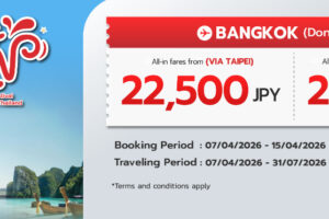 Thai Lion air(タイ ライオンエア)は2026年4月7日から、台湾・バンコク路線がお得になるセールを実施しています。 セール対象路線 東京(成田国際空港)⇔台湾/台北(台湾桃園国際空港)片道17…