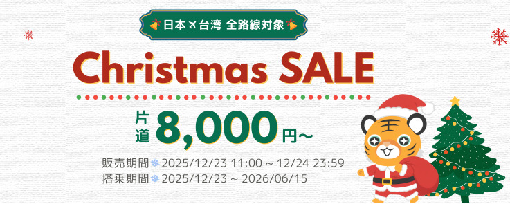タイガーエア台湾、2025年12月23日〜24日 台湾全路線がお得になる「クリスマスセール」