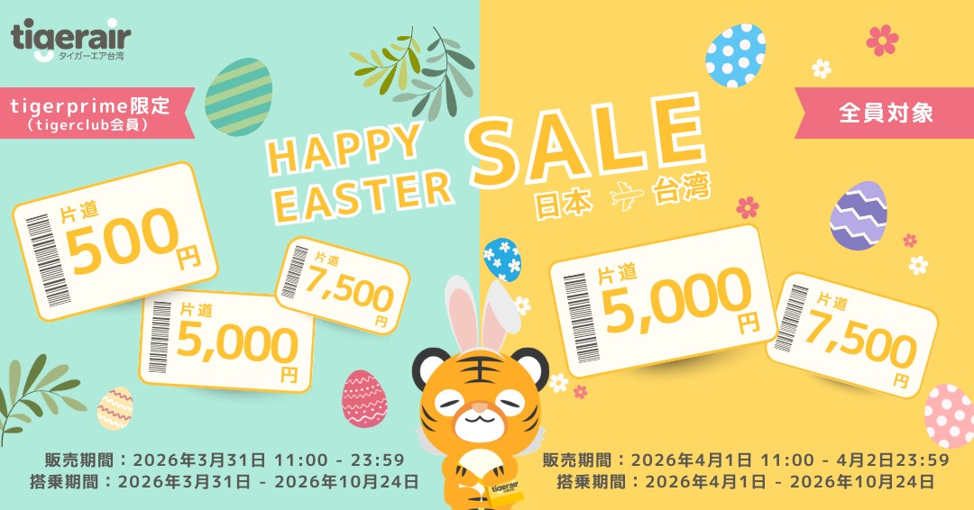 タイガーエア台湾、2026年3月31日〜4月2日 台湾線がお得になる「ハッピーイースターSALE」