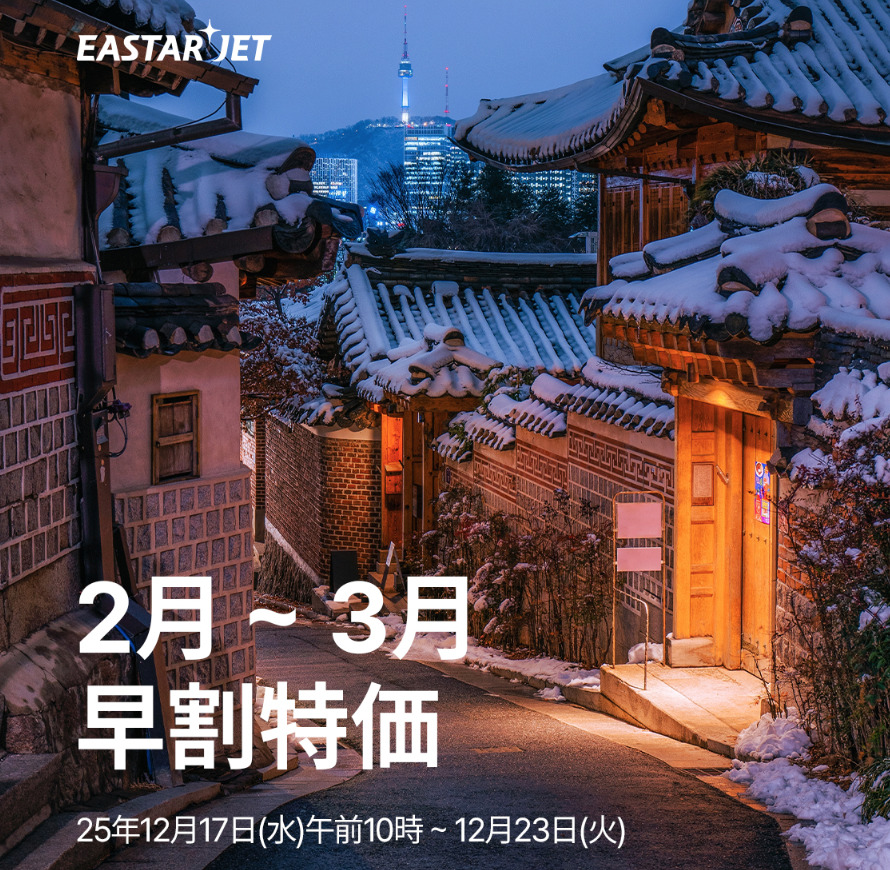 イースター航空は2025年12月17日10時から、韓国線がお得になる「早割特価セール」を実施します。