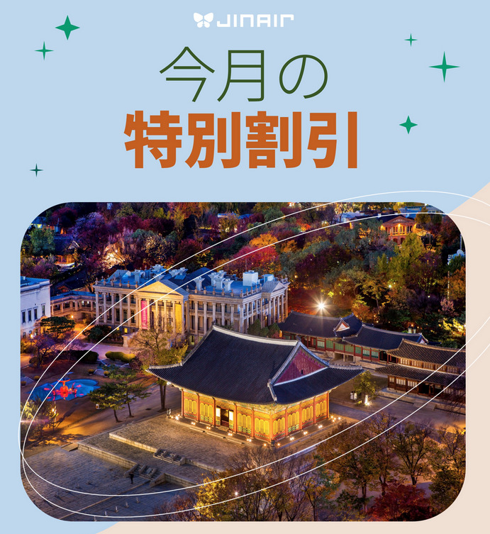 Jin Air (ジンエアー)は2025年11月6日から、韓国線が最大10%OFFになるセールを実施しています。