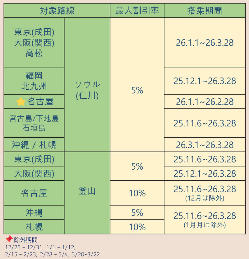 搭乗期間が2025年11月6日〜2026年3月28日の航空券が対象です。