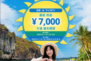 セブパシフィック航空は2025年11月1日から、フィリピン線が7,000円〜になるセールを実施しています。 セール対象路線と価格 東京(成田国際空港)⇔フィリピン/マニラ(ニノイ・アキノ国際空港)7,500…
