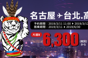 タイガーエア台湾、2019年3月11日〜12日 「名古屋⇔台北・高雄線セール」
