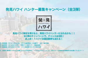 ハワイ州観光局は2019年1月24日から、ハワイ往復回数券が当たるSNSキャンペーンを実施しています。 キャンペーンでは、ハワイ検定を受け、その検定結果をSNSでシェアなどをすると、抽選でハワイ往復回数券(12枚綴り)が…