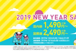 Peach(ピーチ)は本日の深夜1月2日0時から、「2019 NEW YEAR SALE」を実施します。 ■セール対象路線と価格 大阪(関西国際空港)⇔北海道(釧路空港) 1,990円 or 2,990円 大阪(関西国際…