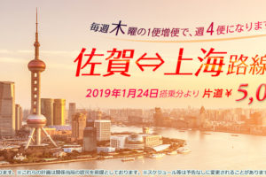 春秋航空、2019年1月24日から佐賀⇔上海線を増便し、週4便運航に