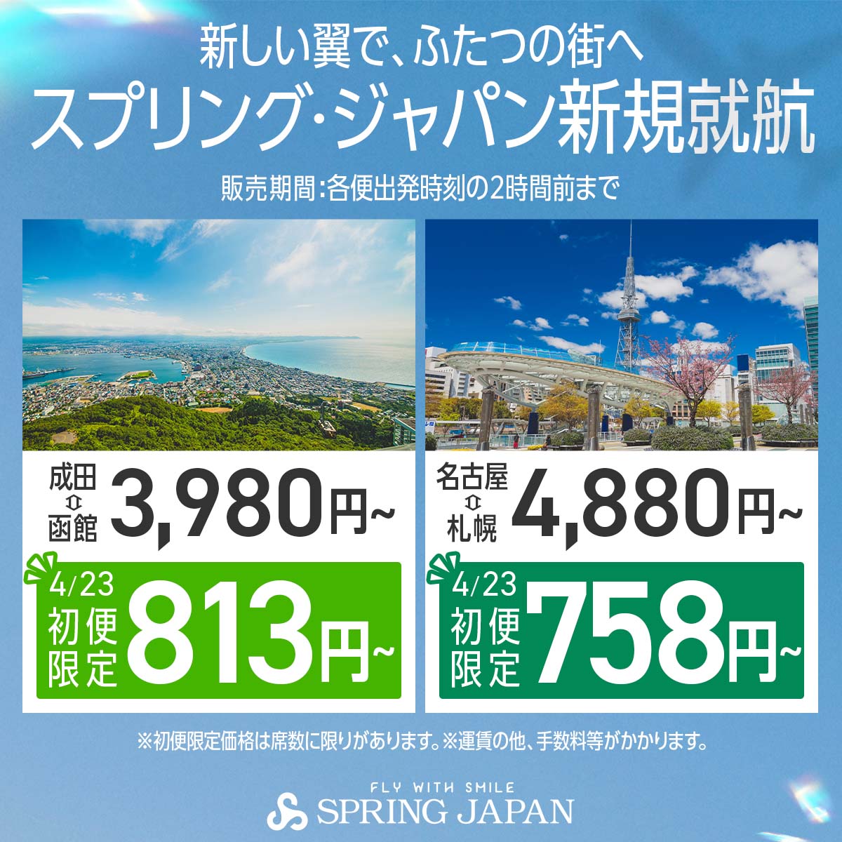 SPRING JAPAN、2026年4月23日より新規就航する成田⇔函館線・名古屋⇔札幌線を記念したセール
