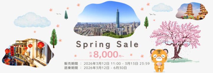 タイガーエア台湾は2026年3月12日11時から、一部の台湾線がお得になる「Spring Sale」を実施しています。 セール対象路線と価格 仙台↔ 台北・高雄:片道10,500 円~ 新潟&…
