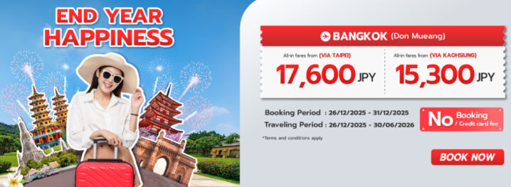 Thai Lion air(タイ ライオンエア)、2025年12月26日〜31日 台湾・バンコク路線がお得になるセールを実施