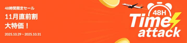 JEJUair(チェジュ航空)、2025年10月29日〜31日 一部の韓国線がお得になる「48時間限定セール」