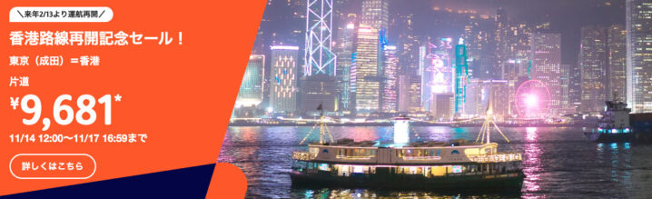 Jetstar(ジェットスター)は2025年11月14日12時から、アジア路線が対象の「香港路線再開記念セール」を実施します。 今回は2026年2月13日より運航を再開する成田⇔香港線を記念したセールです。 …