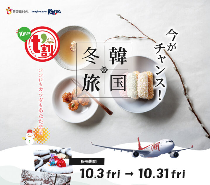 ティーウェイ航空は2025年10月3日から、韓国線がお得になる「t’割キャンペーン」を実施しています。 キャンペーンでは、割引コードとクーポンの利用で韓国路線がお得になります。 割引コード「IMAGINEKR…