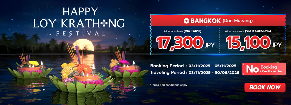 名古屋(中部国際空港)⇔タイ/バンコク(ドンムアン空港)※台北経由 片道19,100円
