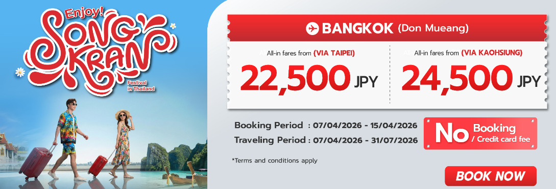 北海道(新千歳空港)⇔タイ/バンコク(ドンムアン空港)※高雄経由 片道26,500円