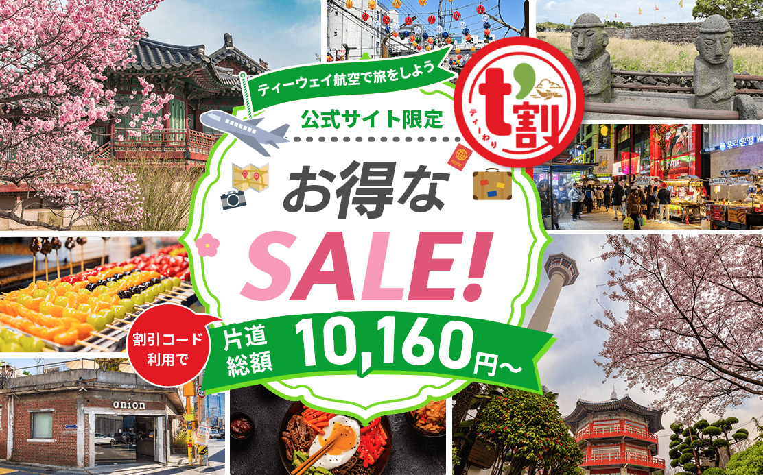 ティーウェイ航空は2026年4月15日から、韓国線がお得になる「t’割キャンペーン」を実施しています。